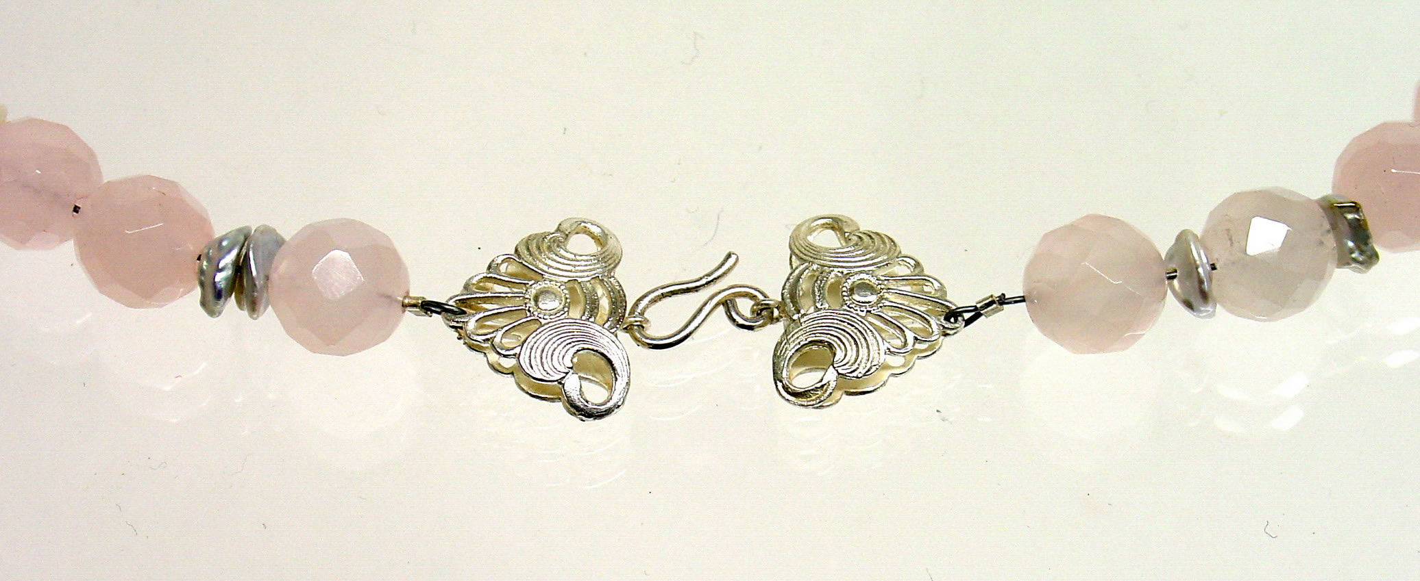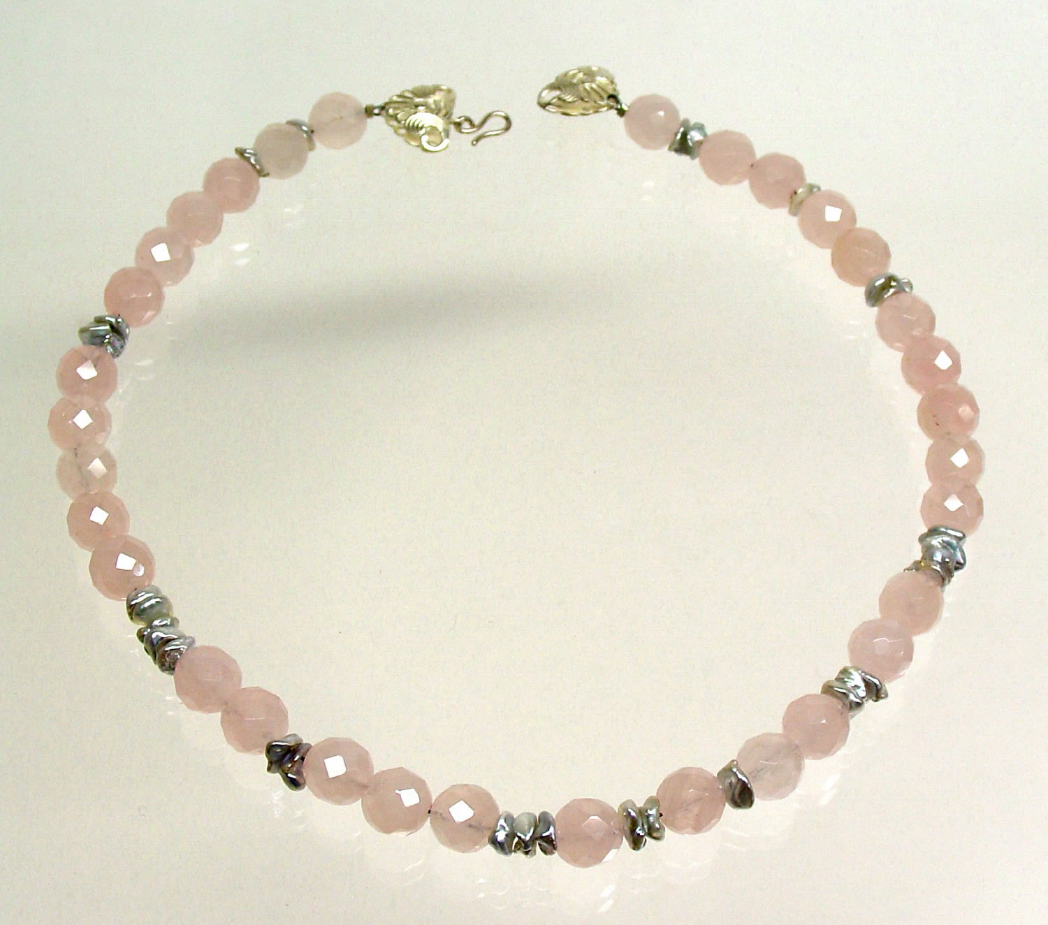 Rosenquarz, graue Süßwasserperlen, Einzelstück |