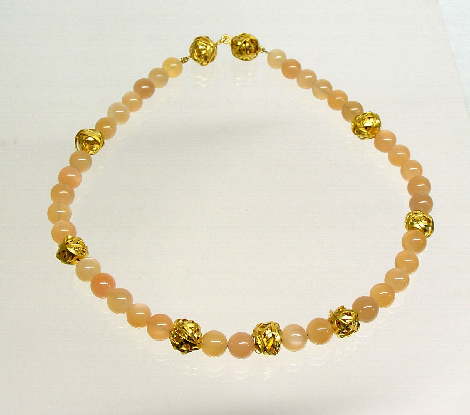 oranger Mondstein, vergoldete Elemente, Einzelstück |