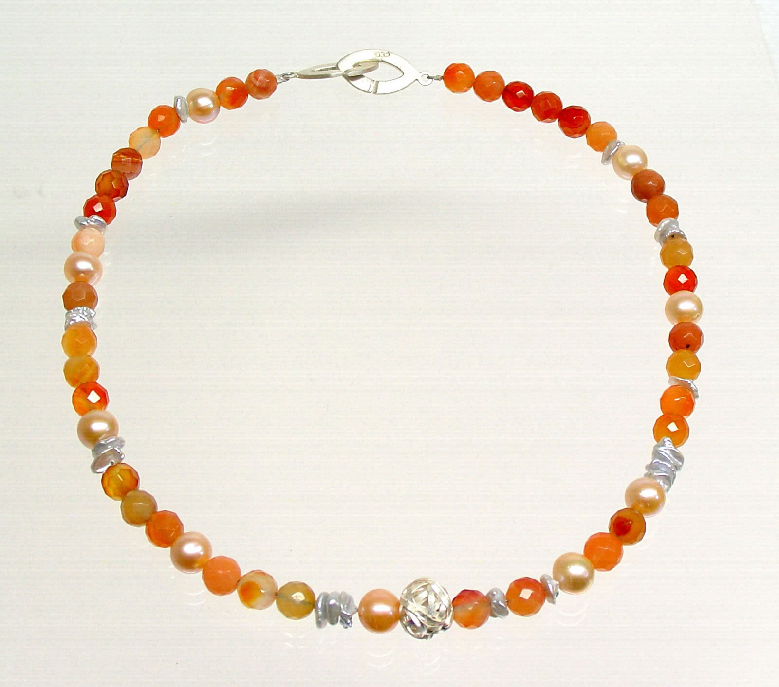 Süßwasserperlen, Karneol, Amethyst, Bergkristall,