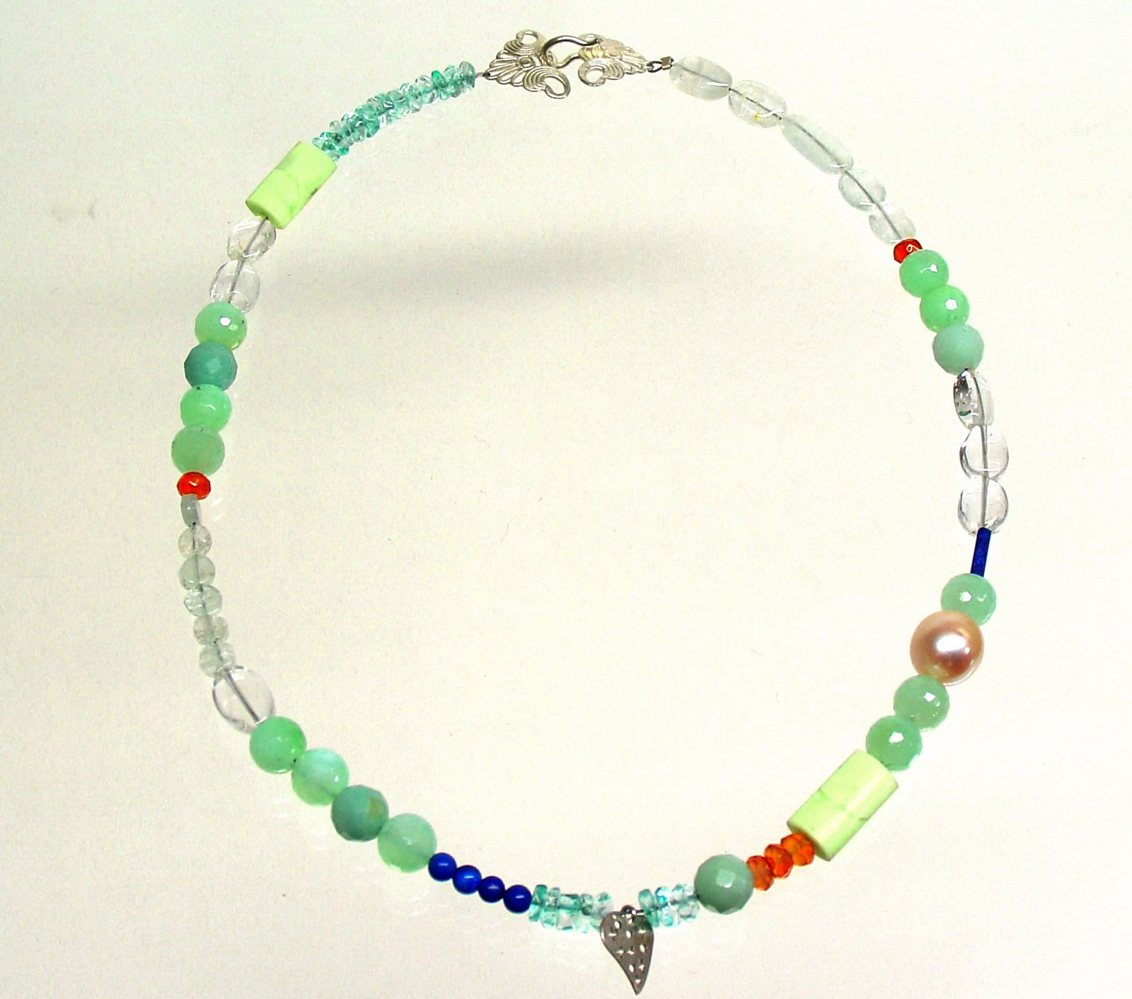 Chysopras, Aquamarin, Lapislaszuli, Karneol und Topas, Silberelemente |
