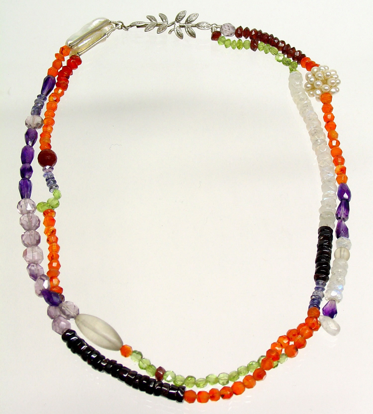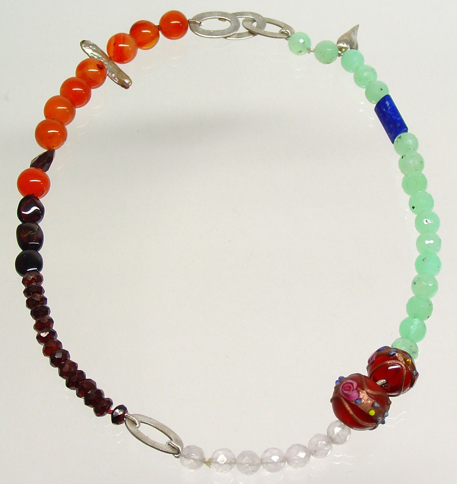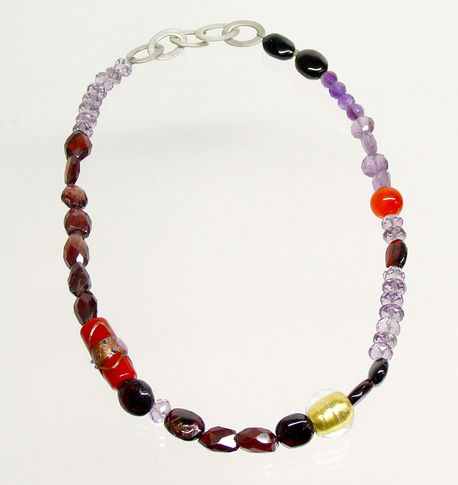 Amethyst, Granat, Karneol, venezianische Glasperlen, Silberelemente