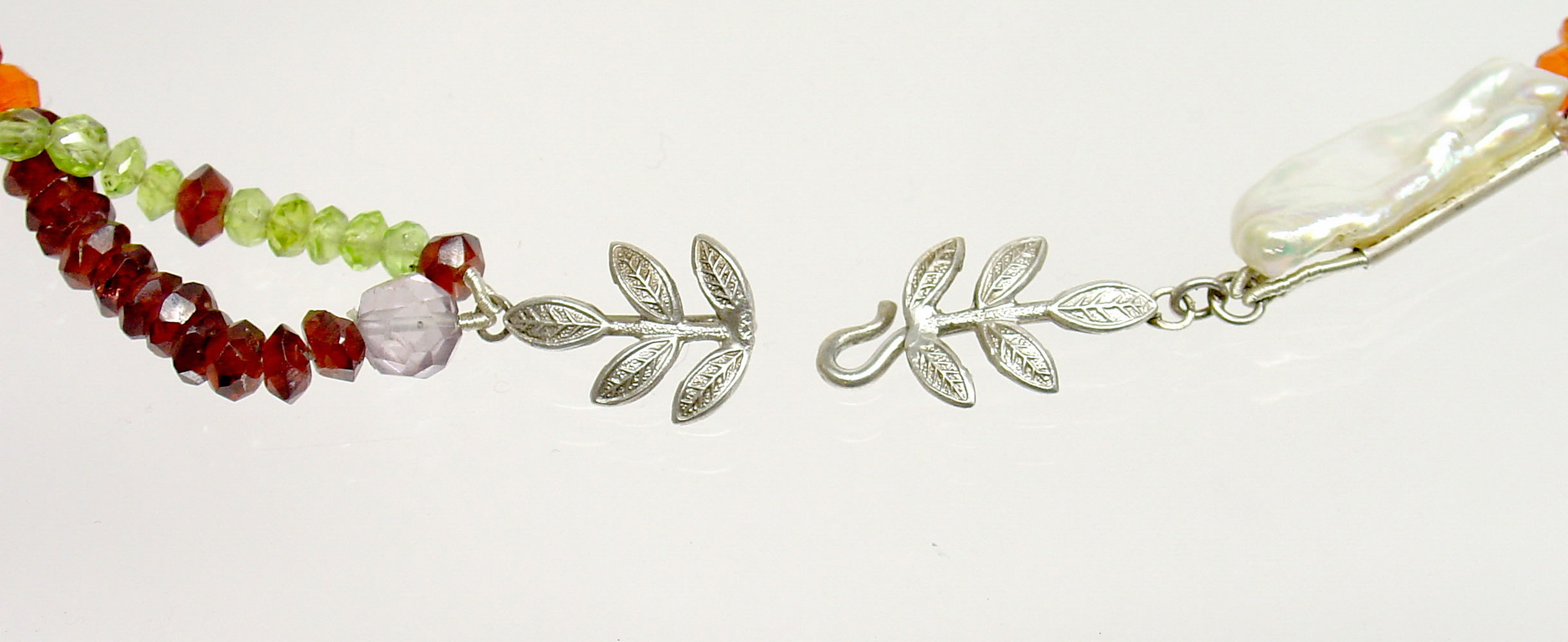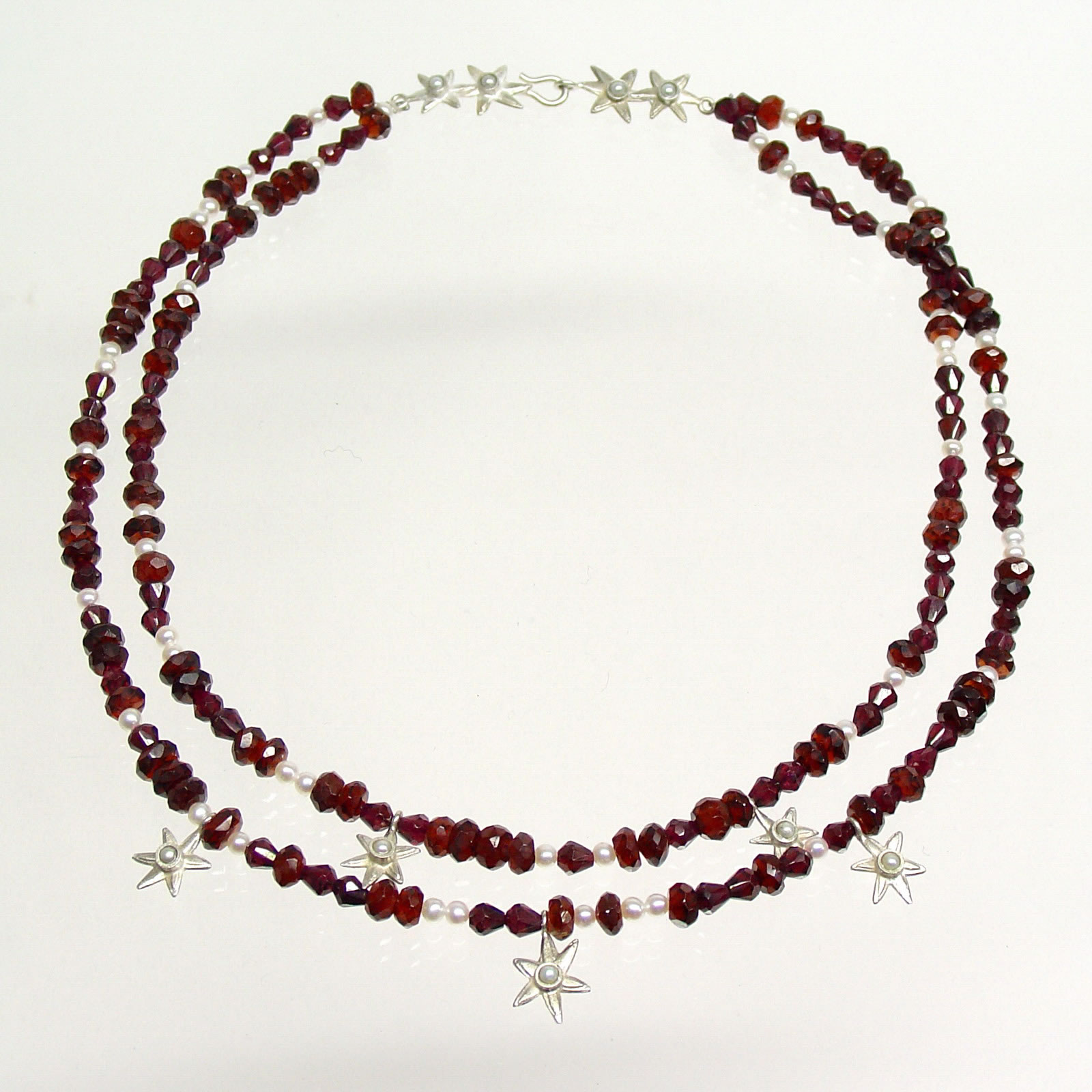 Granat und Süßwasserperlen, Silberelemente, Einzelstück |